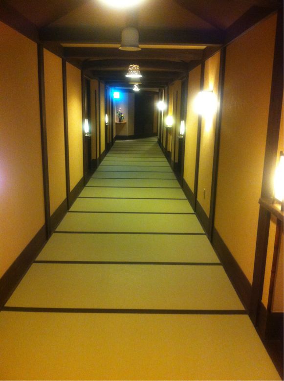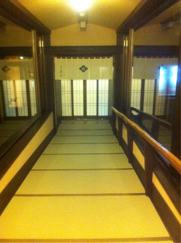 ここの宿の良いところは、館内が畳ってこと。エレベーターの中もちゃんと畳。