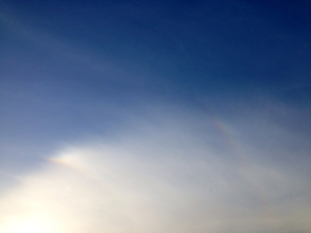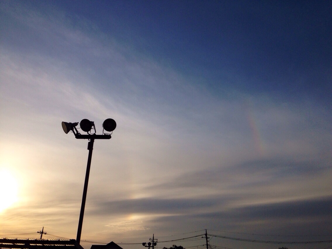 今日は太陽の周りに二重の虹が出来ていた。丸くじゃなく、両端の一部分だったけど。日暈だね。虹とは言わないらしい。