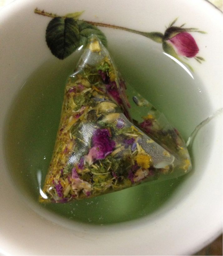 レモンバーベナ、レディースマントル、カモマイル、ラベンダー、ローズレッド、マリーゴールドのブレンド。