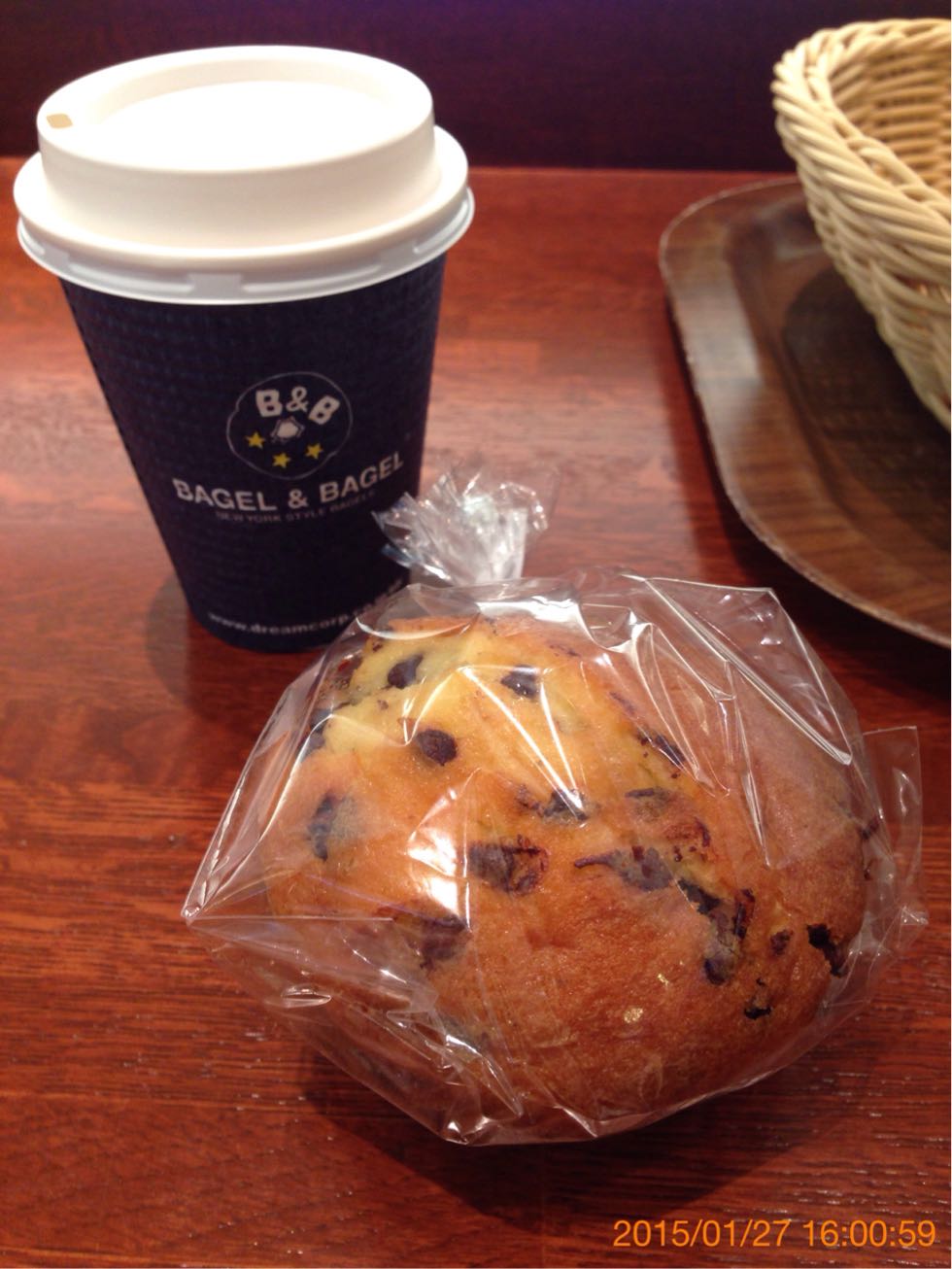 1ビルのベーグル&ベーグルでアメリカンとチョコチップマフィンを食べた。美味しかった!