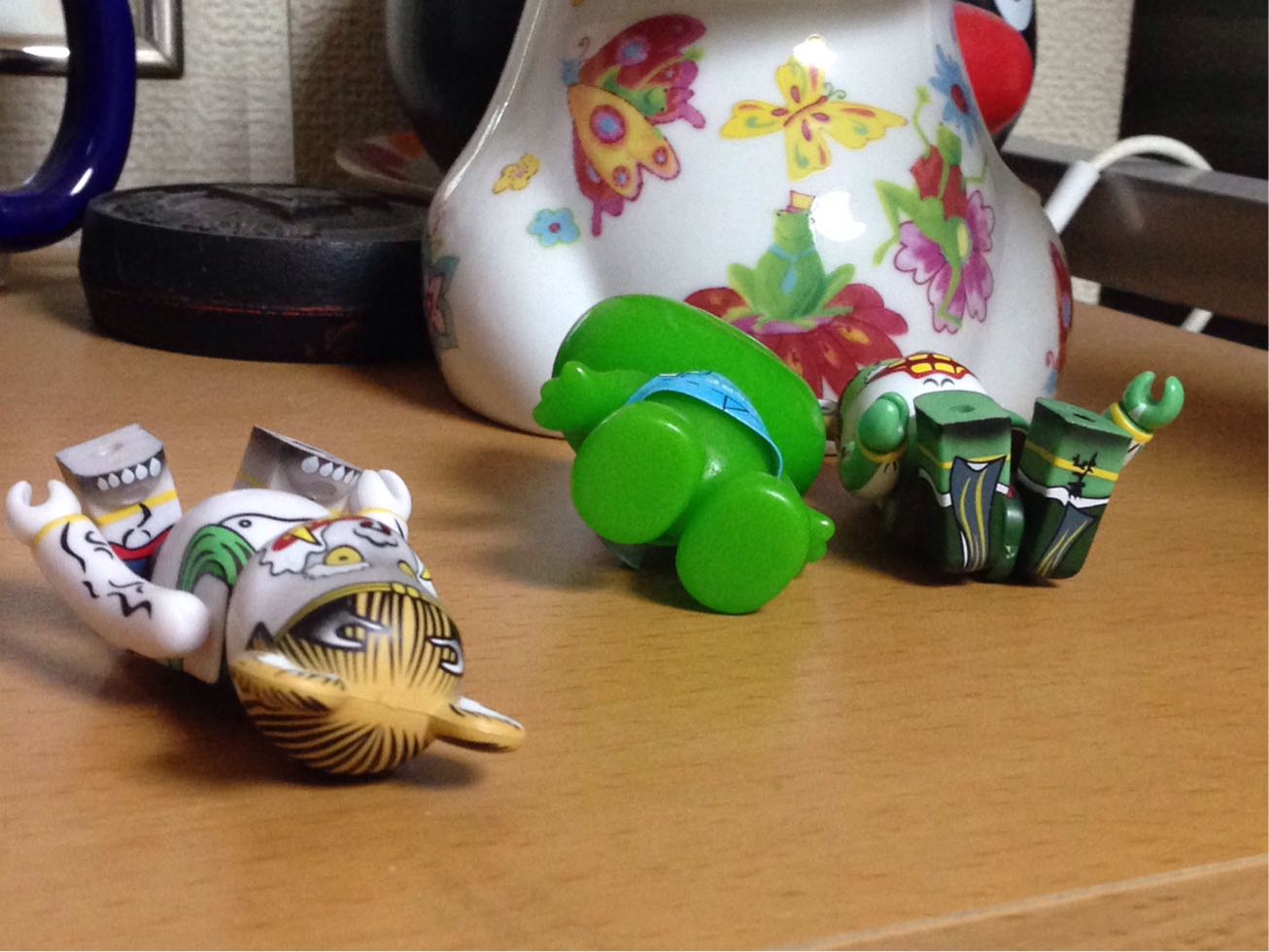 何事もなし、と思ったら、風神雷神のベアブリックが転げてた!あとザ・ガードのおまけにもらったカエル。