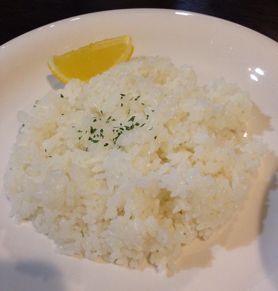 ご飯にレモンを搾って食べると美味しさ倍増!初めて行った時は知らなくて搾らなかったんだ。別の時に、隣のテーブルにいた男性2人が搾って食べているのを見て、マネしておそるおそるやってみたのよ。そしたらこれが美味かった!って前も書いたか。