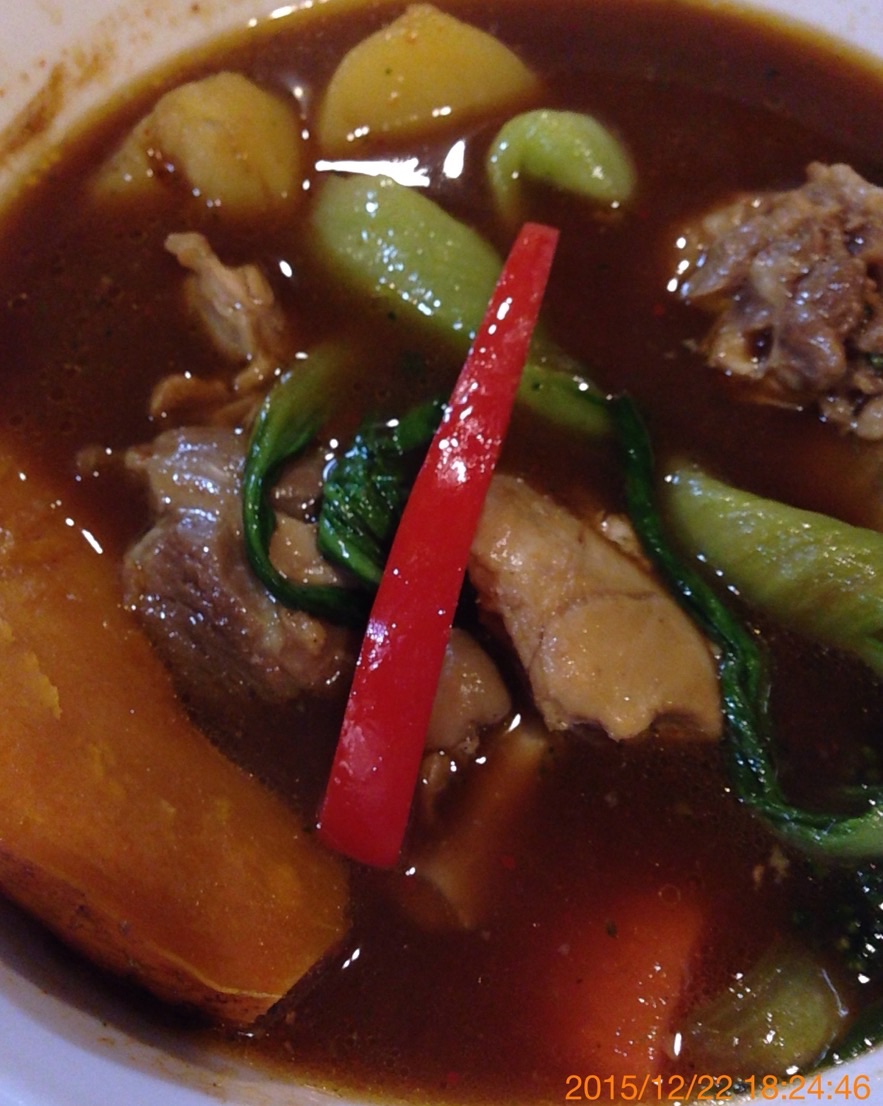 今回は何にしようかなーと思ったけど、やっぱりいつものチキン野菜のスープカレーにした。