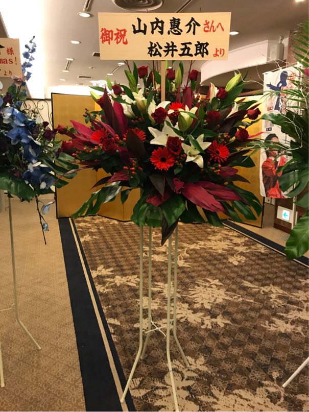 作詞家の松井五郎氏からのお花。来年の勝負曲が松井五郎先生ならいいなあ……。