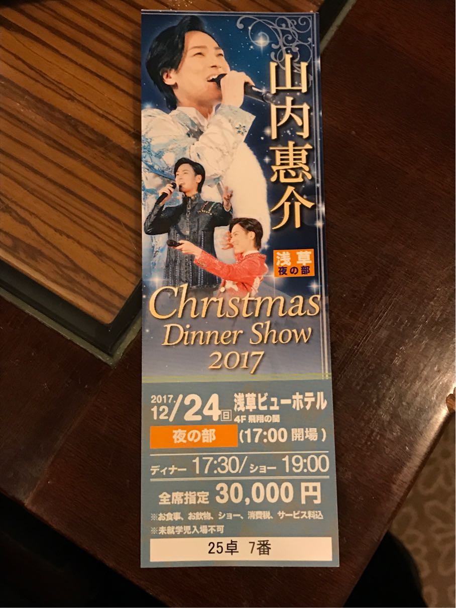 12/24夜の部の山内惠介クリスマスディナーショー(浅草ビューホテル)に行ってきました。