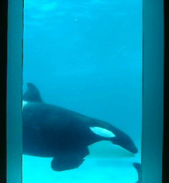 レストランの窓から見えるシャチ。